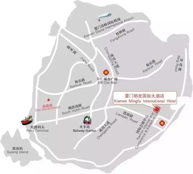 The hotel is neighboring to the Lianqian Business District, the International Conference & Exhibition Venue, the Animation Software Park Ⅱand the Embassy Zone. It is 20-30 minutes driving distance to the Xiamen International Airport and, direct access to the Ferry Terminal Via the Island’s Ring Road.